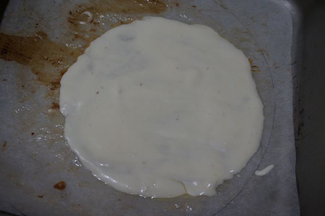 Духовка 175"С. На горячий противень (+пергамент и масло) выливаю 1-1,5 ст.л. теста, слегка разравниваю, выпекаю 7-8 минут.