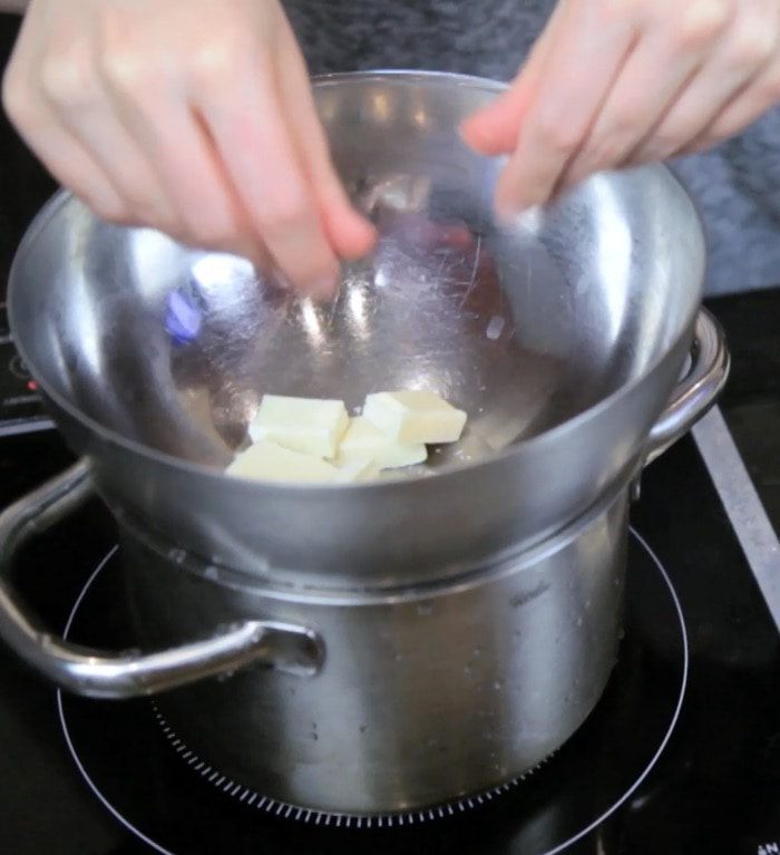 Растопить белый шоколад на водяной бане.