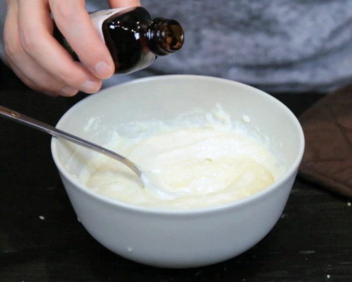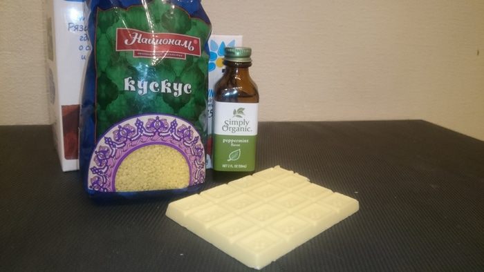 В одну часть примешать растопленный белый шоколад и мятный экстракт.