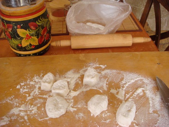 Тесто раскатать тонко-тонко и растянуть еще на руках (можно не делать ,но пробовать надо,получается это легко и интересно).