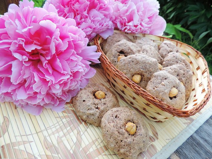 Предварительно измельчаем обжаренный и очищенный фундук. Несколько штучек отложите для украшения. У меня получилось 25 печенек. Остальной фундук можете либо мелко порубить ножом, либо воспользоваться любой малой механизацией (блендер, мельничка. кофемолка и т.д.). Я измельчала орехи при помощи мельнички, но не в муку, а чтобы оставались крупные кусочки.