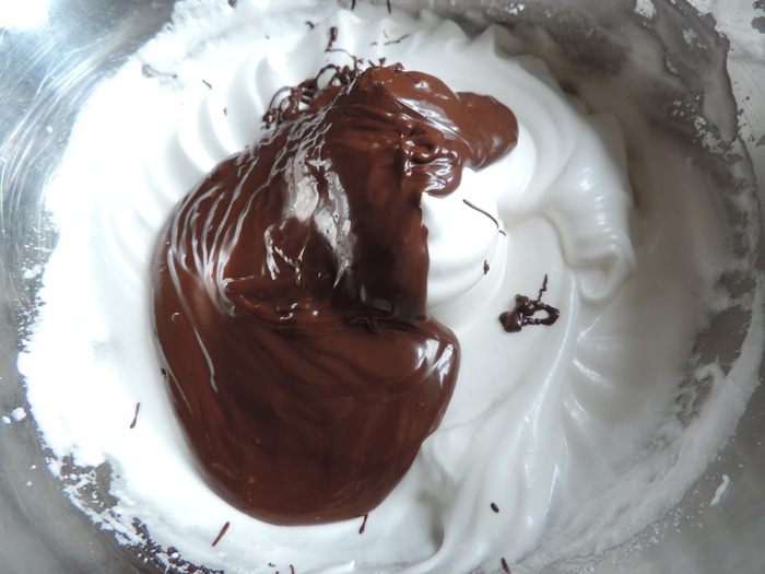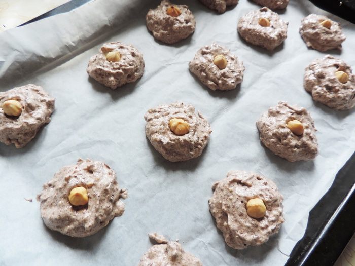 Смешиваем белки с измельченным фундуком. Аккуратно перемешиваем, чтобы белки не осели.