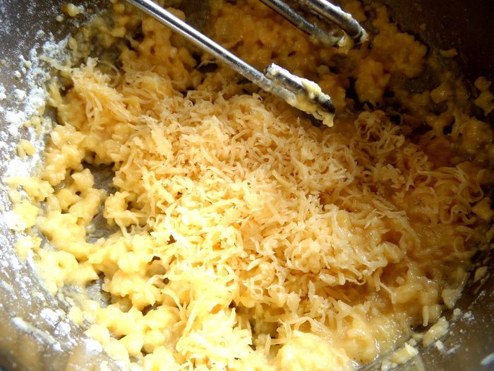 Масса ещё тёплая и сыр сразу плавится.
