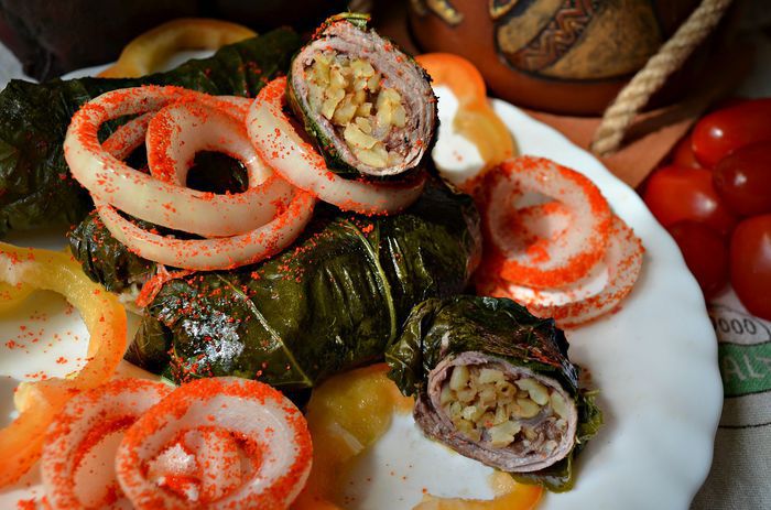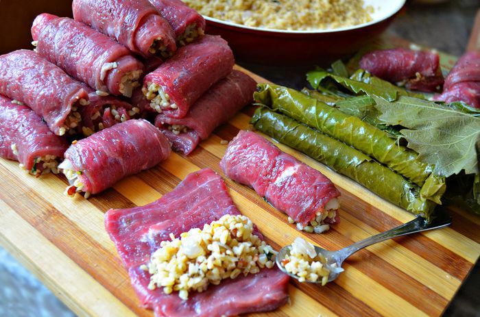 Хочу предложить вам очень интересный и невероятно вкусный рецепт приготовления армянской долмы!! В отличие от традиционной долмы в этом рецепте используется не фарш, и не рубленное мясо, - начинка заворачивается в тонкий кусок говядины. Поэтому желательно использовать свежее, немороженное мясо, вырезку или заднюю часть. Блюдо получается оригинальным и праздничным! Очень вам рекомендую его приготовить!!