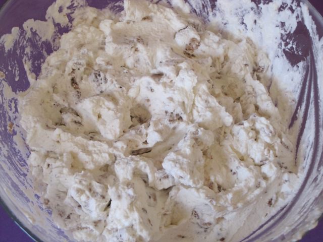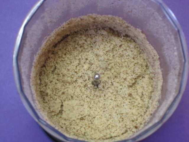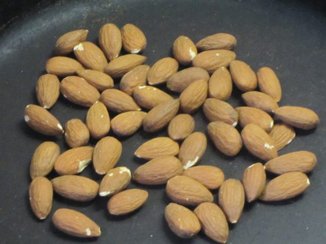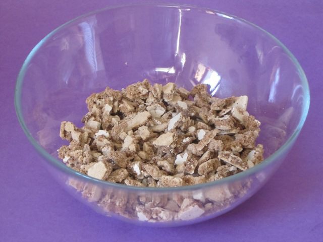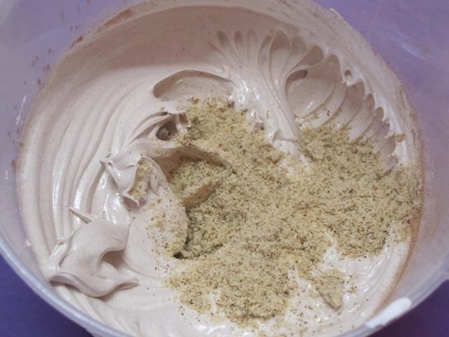 Когда масса станет плотной, аккуратно ввести миндальную крошку.