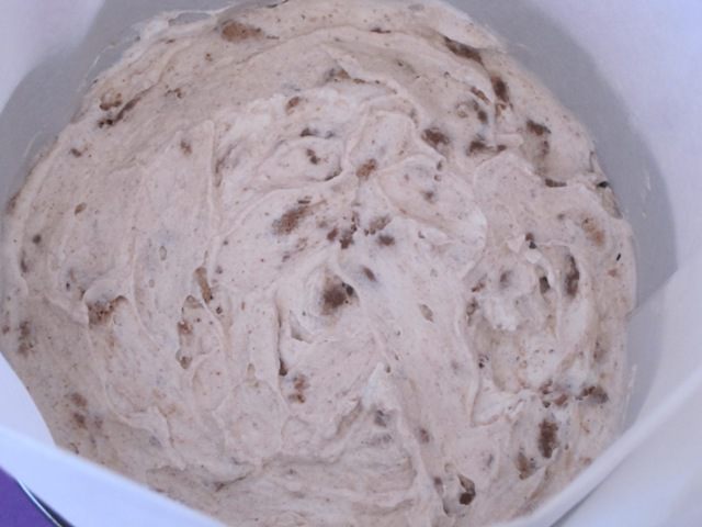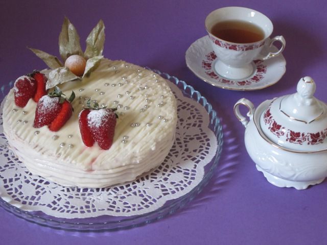 Вот такой торт в разрезе. Держать торт надо в морозильнике. Приятного аппетита в жаркий летний день!