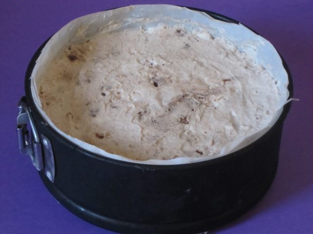 На малиновый соус выложить оставшийся крем с безе. Поставить в морозильник на 3 часа.