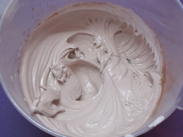 Не останавливаясь, добавить какао, 120 грамм сахарной пудры и 1 чайную ложку крахмала.
