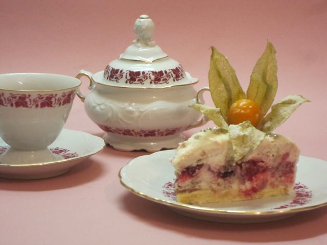 Очень холодный летний десерт. Требует много времени для приготовления. Соус из малины дает яркую вкусовую нотку. Вкус безе с миндалем отходит на второй план. Хорошо приготовить такой торт-мороженое, разрезать на кусочки, положить в морозильник и в солнечный, жаркий летний день достать и лакомиться.