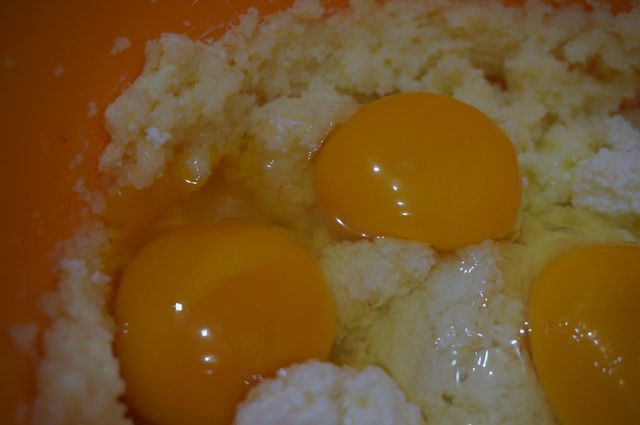 Выложить часть теста в форму, сверху немного варенья (по центру, немного вдавливая) и залить оставшимся тестом.