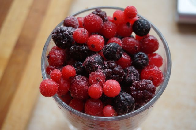 Домашние ягоды - 1,5 стакана! Смородина красная, черная, ежевика и малина - урожай прошлого года, из морозилки :)
