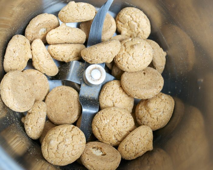 Тем временем займемся приготовлением крема. Печенье Амаретти измельчить в мелкую крошку. (рецепт приготовления печенья здесь - http://www.edimdoma.ru/retsepty/59731-pechenie-amaretti)