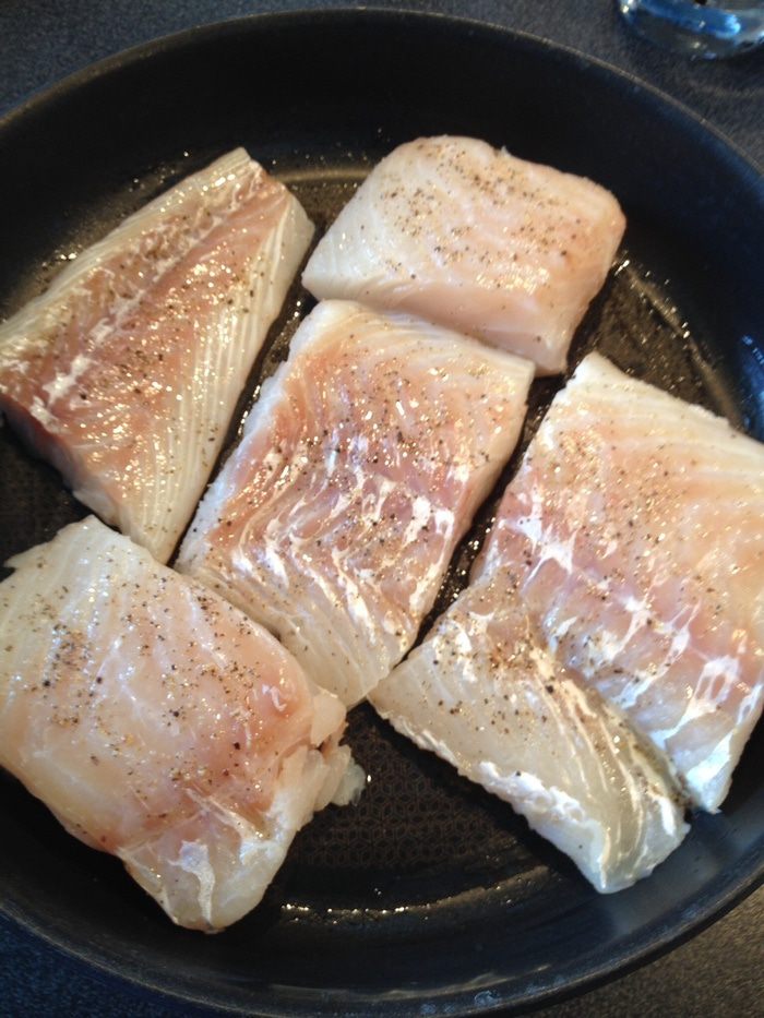Разогреть духовку до 150 градусов. Филе трески посолить, выложить в форму для запекания, полить оливковым маслом и белым вином, выпекать 10-15 минут.