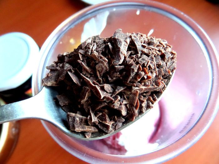 Припорошим сверху шоколадной крошкой и можно подавать)))