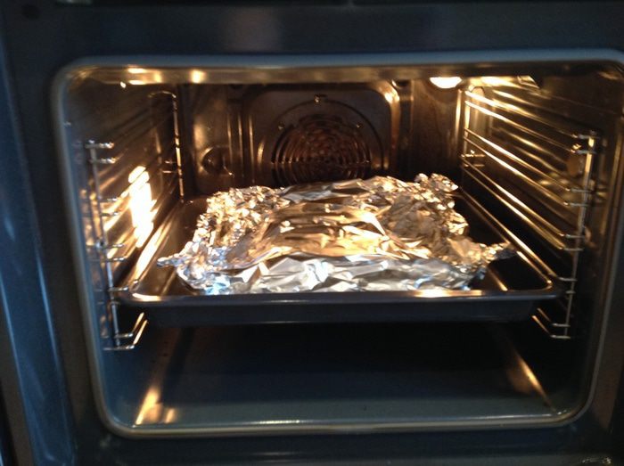 Накройте фольгой и выпекайте в духовке 15 минут.