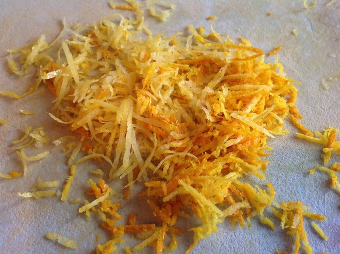 Натрите цедру лимона и апельсина.