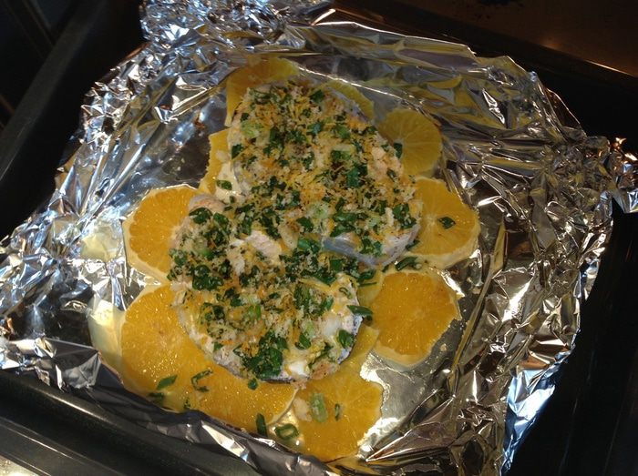 Достаньте рыбу, снимите фольгу, посыпьте этой панировкой филе и запекайте еще 10 минут.