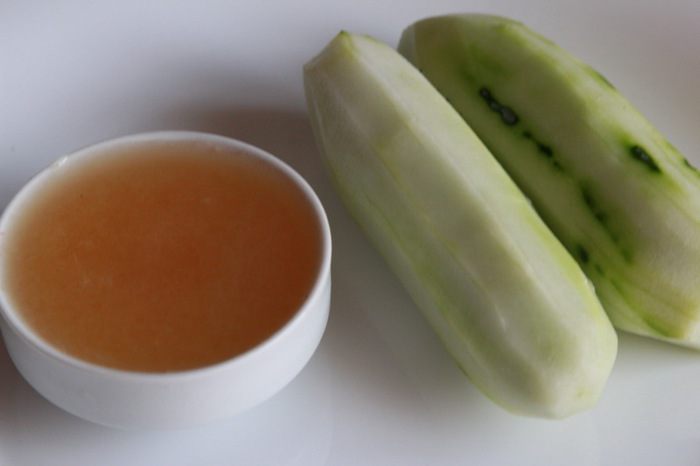 Огурцы очищаем от кожуры, мед смешиваем с лимонным соком.