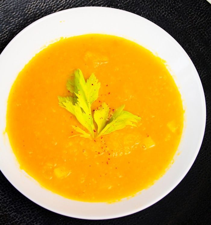 Вынуть чеснок и апельсин (кто хочет, чтобы мякоть апельсина тоже была в супе, изначально лучше выжать сок апельсина в суп, а апельсиновую шкурку добавить для аромата, а потом выбросить). Посолить, поперчить, пробить на блендере.