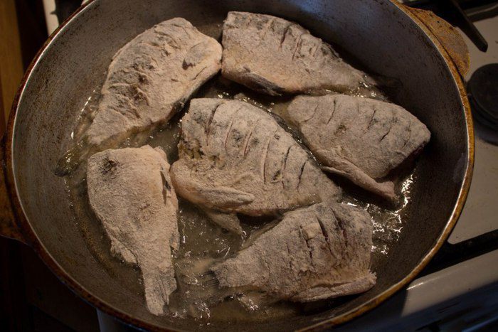 Сделать поперечные насечки, не прорезая до конца. Это позволит нам избавится от мелких костей.