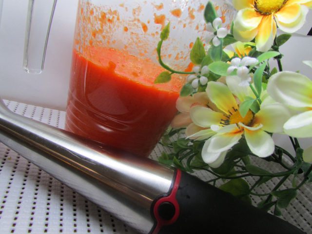 Затем с помощью погружного блендера перцы пюрировать, до однородной массы.