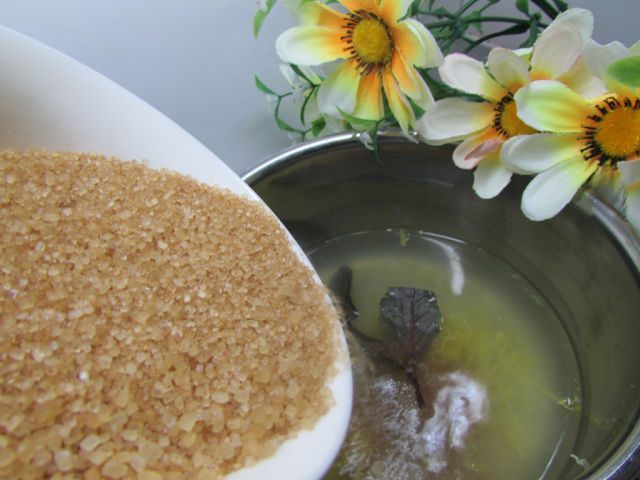 Сварить сироп. Смешать в сотейнике сахар, цедру, несколько листиков базилика, половину лимонного сока и 200 мл минеральной воды без газа. Довести до кипения, варить 5 минут. Затем полностью остудить, примерно 1 час.