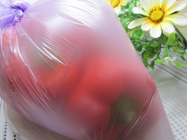 Перцы вымыть и хорошо обсушить. Выложить на решётку и запечь в духовке при температуре 200 градусов в режиме гриля. Я готовила в аэрогриле на нижней решетке 15 минут, t-205 градусов. Кожица на перцах должна вздуться и местами покрыться подпалинами. Затем перцы осторожно сложить в пакет. Пакет плотно завязать и положить в холодильник на полчаса. После этого с перцев снять кожицу, вынуть черенок с внутренностями, держа перец вертикально, чтобы не вытек сок (можно это делать над тарелкой).