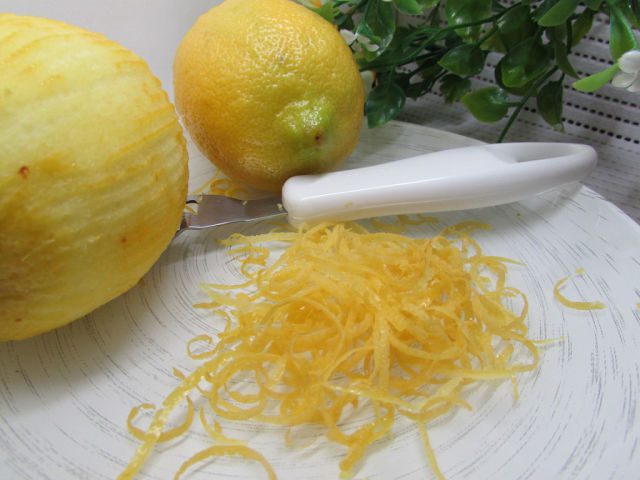 Лимоны тщательно вымыть с помощью щётки. С одного лимона снять тонкими полосками цедру.