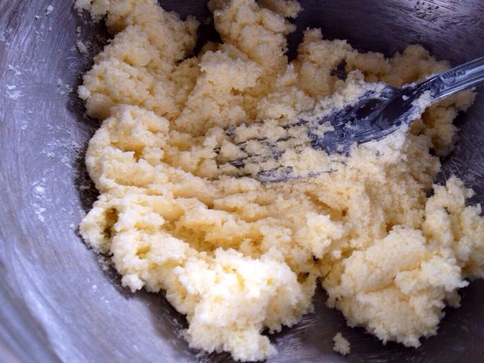 Масло хорошо растереть с сахаром.