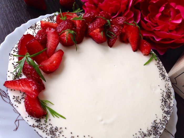 P.S.Ингредиенты расчитаны на разъемную форму диаметром-26см.(я делала пол порции).Пирог можно украсить цедрой(так же ее можно добавить в крем или пирог),ягодами и листиками мяты.