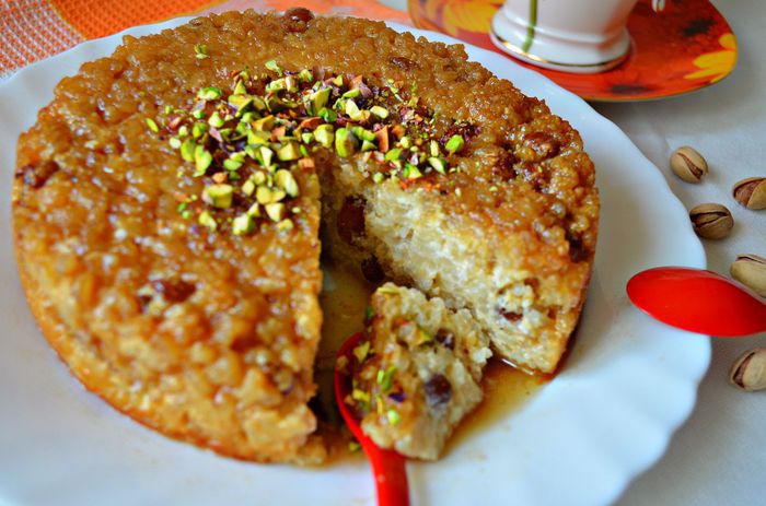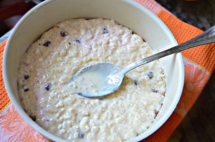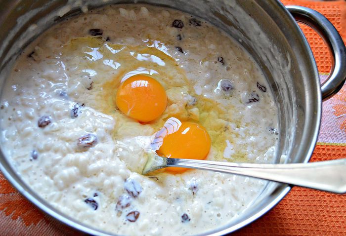 Готовую карамель перелить в форму для выпекания, предварительно смазанную растительным маслом. (Я использовала форму для кулича, можно разложить массу и по небольшим формочкам для пудинга). В форму с карамелью выложить рисовую массу, разровнять. В противень установить форму с рисовой массой, наполовину наполнить горячей водой, и выпекать 45 минут (для маленьких формочек достаточно 30 мин).