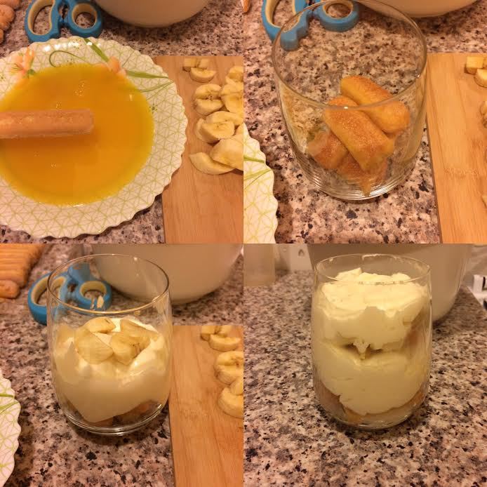 Бананы нарезать. Окунуть печенье в манговый сок, положить в стакан или в форму, покрыть кремом, сверху положить кусочки бананов и опять покрыть кремом.