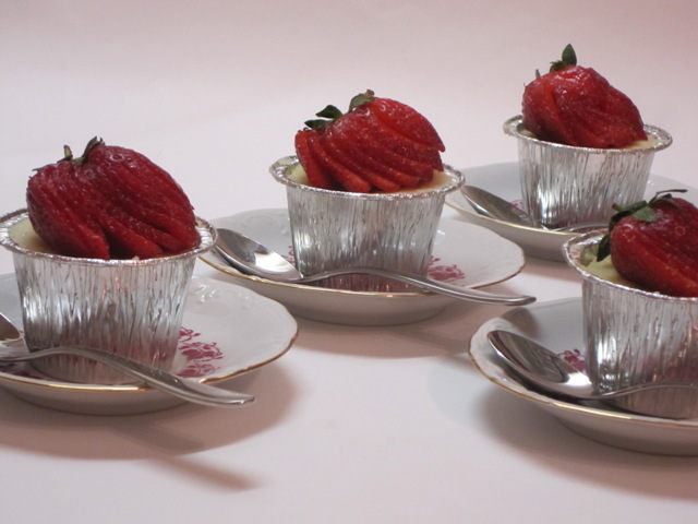Клубнику вымыть, надрезать. Украсить. Можно украсить дольками мандарина, ломтиками киви.