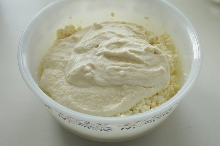 Творог лучше взять нежный или протереть через сито. (я этого не сделала,но пирог не пострадал)