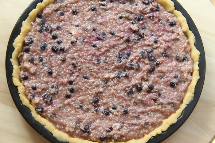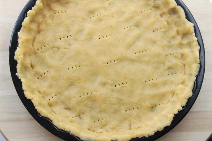 Тесто распределить по форме, наколоть вилкой и убрать в холодильник.