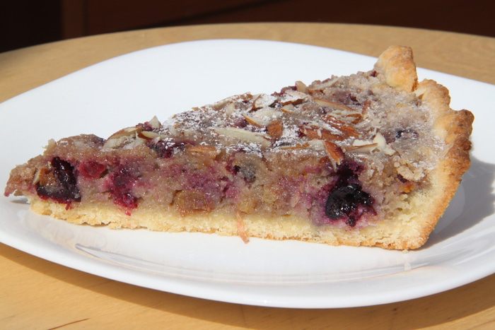 Начинку перемешать и выложить на корж. Верх присыпать миндальными лепестками (или тонко нарезанным миндалём). Выпекать при 170*С примерно 40 минут (верх можно прикрыть фольгой, чтобы края коржа не подгорели).