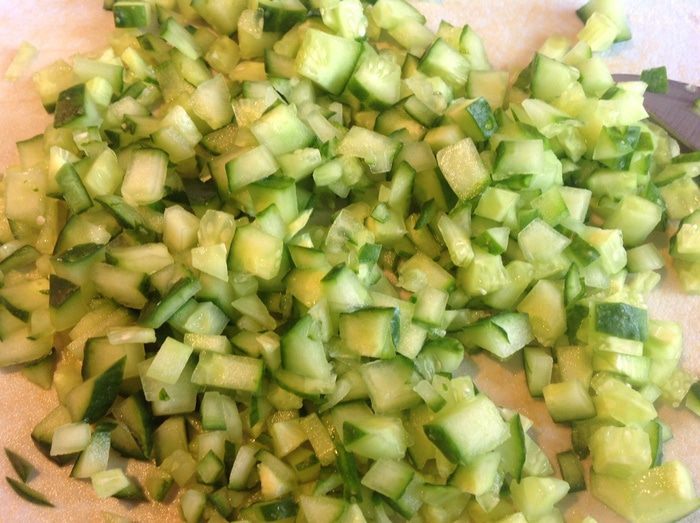Огурцы нарезать очень мелко.