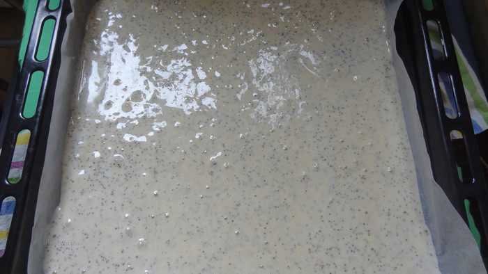 Противень застелить пергаментной бумагой для выпечки бумагой и лопаткой распределить тесто по всей поверхности толщиной 1-1,5 см. в виде прямоугольника. Утолщить края, чтобы при выпечки тесто с краев не подгорело. Выпекать бисквит при температуре 200° С примерно 5-6 минут, до момента когда корж схватился и стал при нажатии упругий. Ставить рулет только (!) в разогретую духовку.