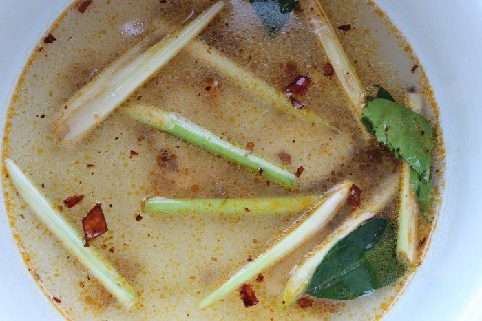 том ям кунг мапхрао нам кхон — версия супа с креветками на кокосовом молоке и с кусочками мякоти кокоса;