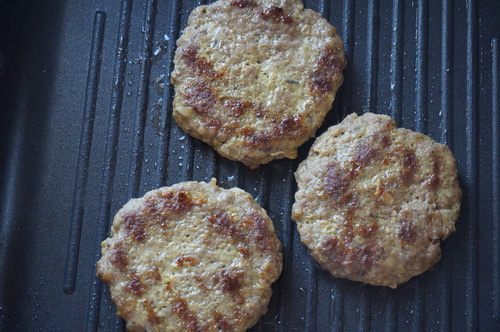 Готовые котлеты обжариваем на сковороде гриль до румяного цвета.