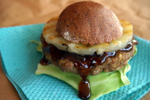 У меня для бургеров было три черных булочки, каждую я разрезала вдоль на две части. Собираем вот такой симпатичный бургер. По моему рецепту таких бургеров получилось три штуки. Угощайтесь! Моей семье бургеры очень понравились.