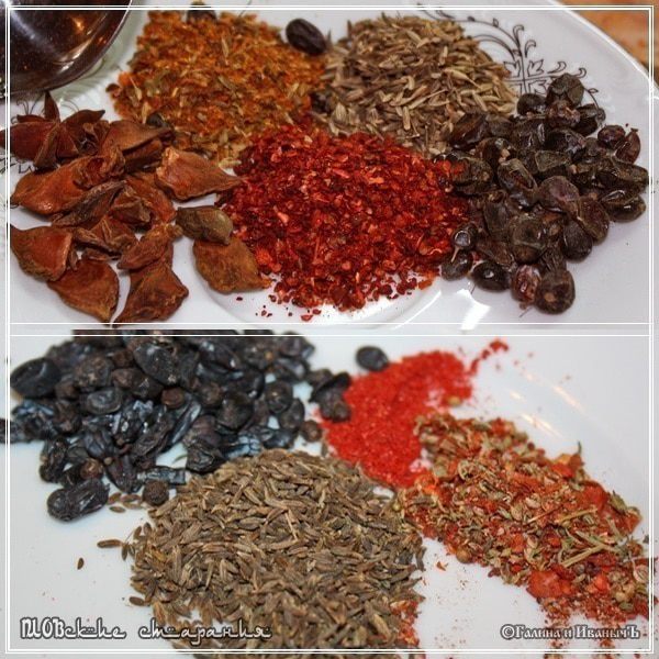 Вет - соль С непосредственно солью все предельно понятно. Лучше всего взять крупного помола, но, на самом деле, какая будет, такая и будет А про специи расскажу отдельно. Про свой набор. И не надо спорить. В каждой избушке – свои погремушки. Да … о количестве специй тоже говорить не буду. Это исключительно исходите из собственных пристрастий. Замечу только что…. Бадьян. Это действительно на любителя. И сушеный гранат тоже.
