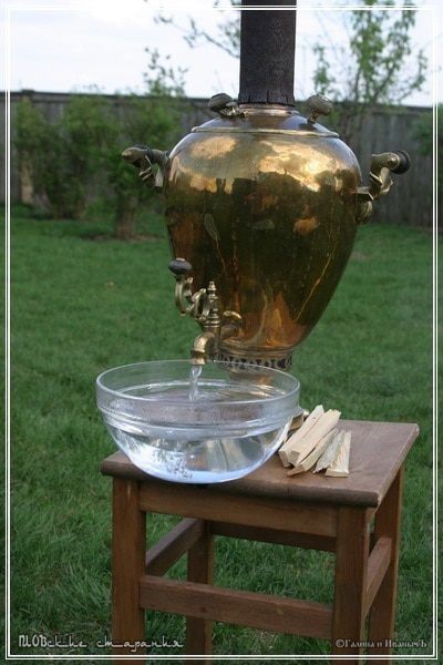 Об - вода В процессе готовки понадобится горячая и даже, не побоюсь заметить, кипяченая вода. Замечу, что вода, конечно же, должна быть чистая и свежая. У кого возможность есть, поставьте сразу самовар. Пусть уж всё будет по-настоящему. С дымком и вкусом праздника.