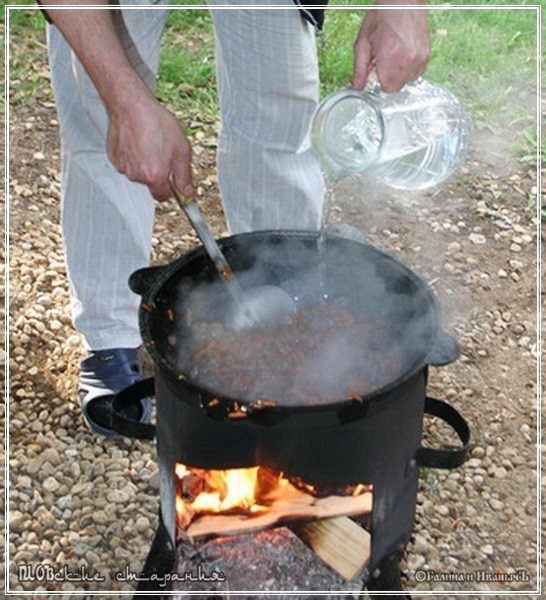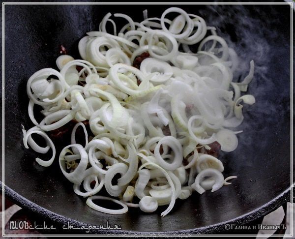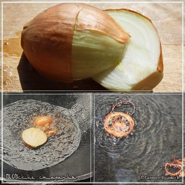 Но! Я расскажу вам о трёх фенечках, которые частенько применяются в процессе. Фенечка первая Общеизвестная. В раскалённое масло бросить разрезанную пополам луковицу. Если нет половинки, то киньте несколько ломтиков, приготовленных для зирвака.