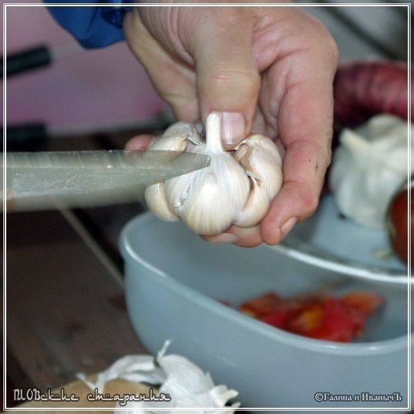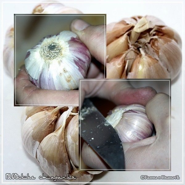 Очищаем лишнюю шелуху, чтобы не портила нам картину и в рот потом не лезла. И все. Больше ничего с чесноком делать не надо.