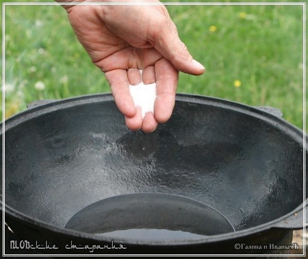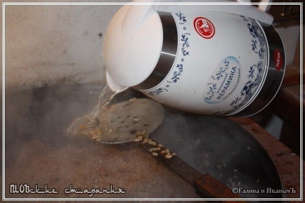 Потом наливаем немного воды, прогреваем её и хорошо споласкиваем казан, чтобы не осталось никакой муки от приготовленного продукта.