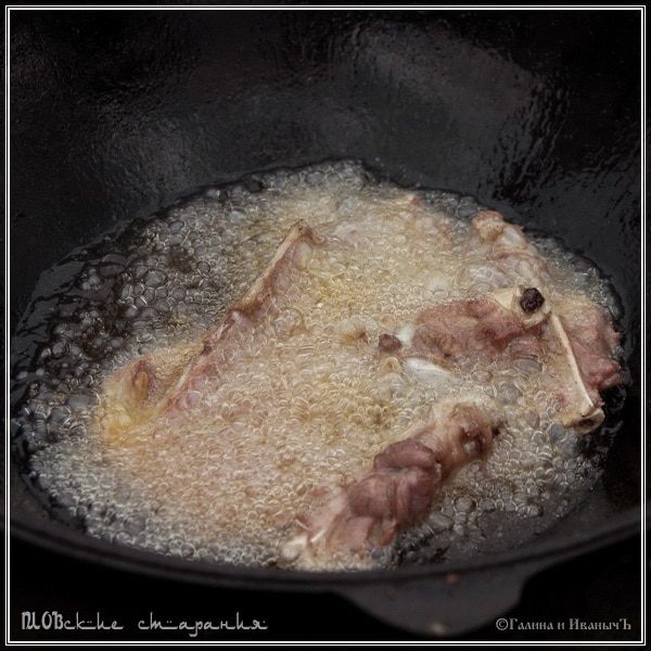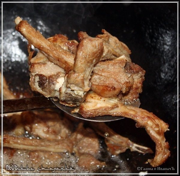 И ребрышки. Закладывать надо в раскалённое масло. Вполне возможно, что за один раз все косточки обжарить не удастся. Поэтому надо учесть, что перед каждой закладкой, масло надо стоит снова раскалить.