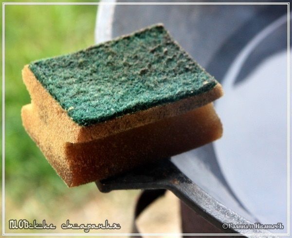 Также понадобится шумовка и ложка…, чтобы перемешивать и пробовать. Их, ложки и шумовки отдельные изображения…, в общем, единственное замечание – ручку у шумовки надо сделать длинной и удобной. Так как казан какое-то время не использовался, то, во-первых, сполоснем его чистой и теплой водичкой, а потом протрем чистой тряпочкой … и никаких!!! Максимум, если понадобится потереть вот такой мочалкой или еще есть такая … из металлической стружки. И повторюсь - никаких моющих средств.