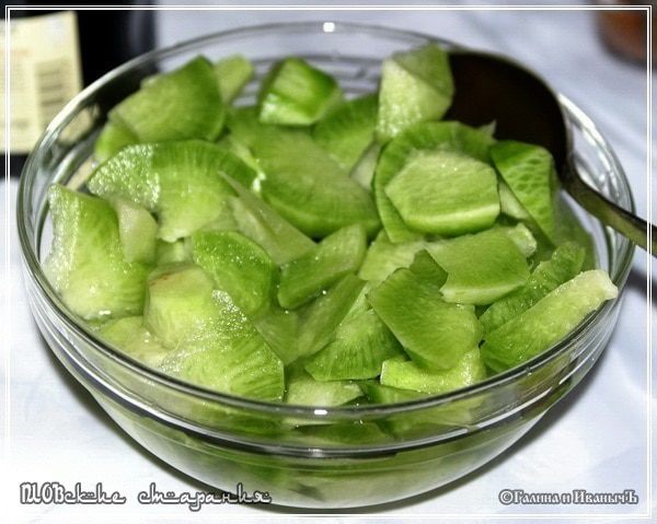 И редька. Заранее нарезается, присаливается и настаивается. В идеале – надо редьку просто наломать, а не резать.
