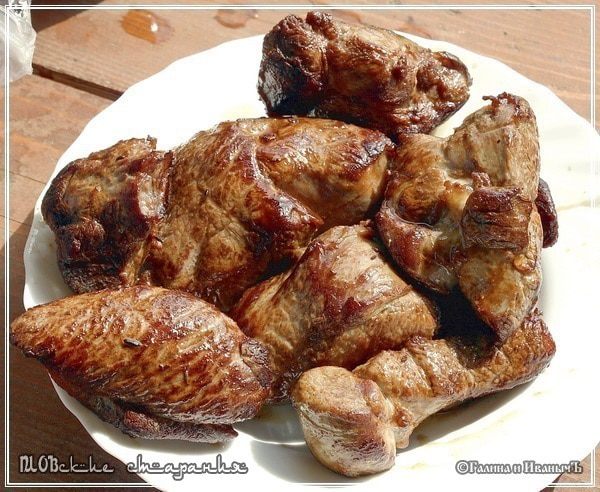 В раскалённом масле, до образования упомянутой уже корочки. Только не увлекайтесь. Не ПРОжаривайте, а, именно ОБжаривайте. Внутри мясо должно остаться практически сырым.